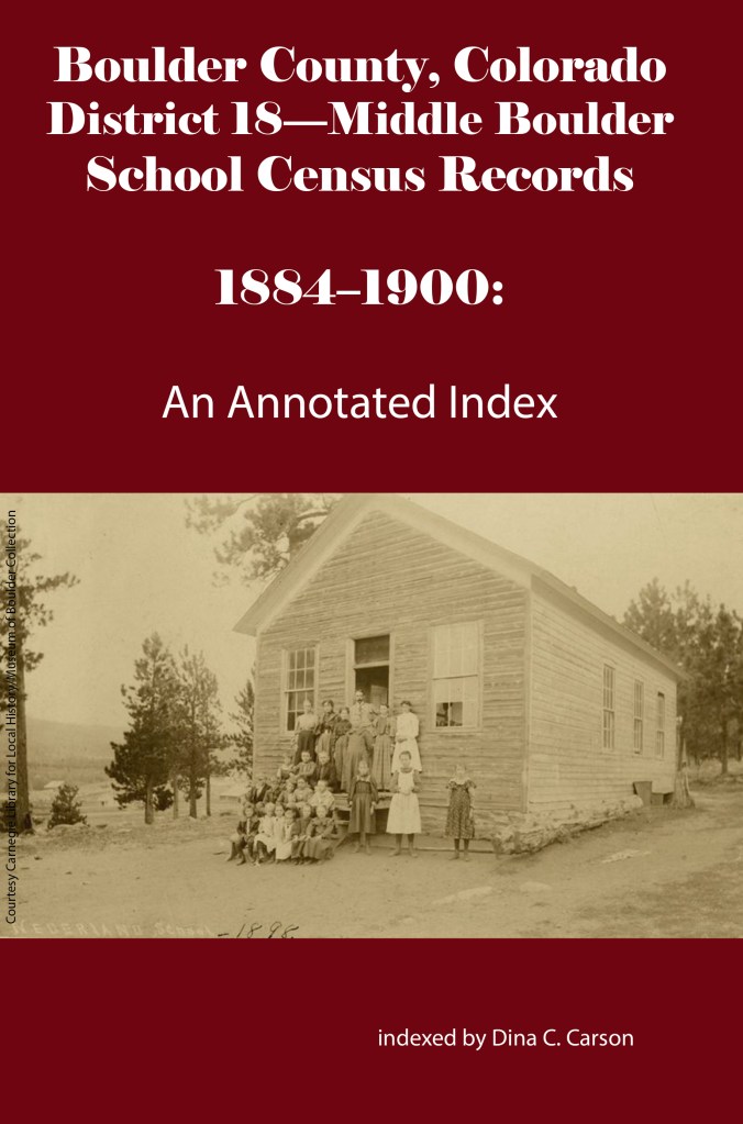 School District No. 18-Middle Boulder (now known as Nederland) was formed in 1872 but there are no extant census records until 1884. Charles H Weeks was Secretary of the district that year, and these are some of the families whose children attended the school: Bryant, Caughlin, Hendrickson, Pickel, Roberts and Savory.
