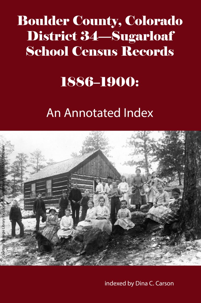 School District No. 34-Sugarloaf was formed around 1875 but there are no extant census records before 1886. Seymour Johnson was the Secretary of the district that year, and these are some of the families whose children attended the school: Berdett, Chapman, Dalley, Firth, Washburn and Williams.