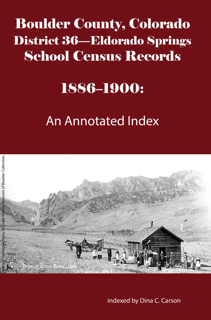 School District No. 36-Eldorado Springs was formed around 1875 but there are no extant census records before 1886. C M Pruden was Secretary of the district that year, and these are the families whose children attended the school: Barber, Blake, Cummings, DeBacker, Jones Marshall, McGinn, and Williams.