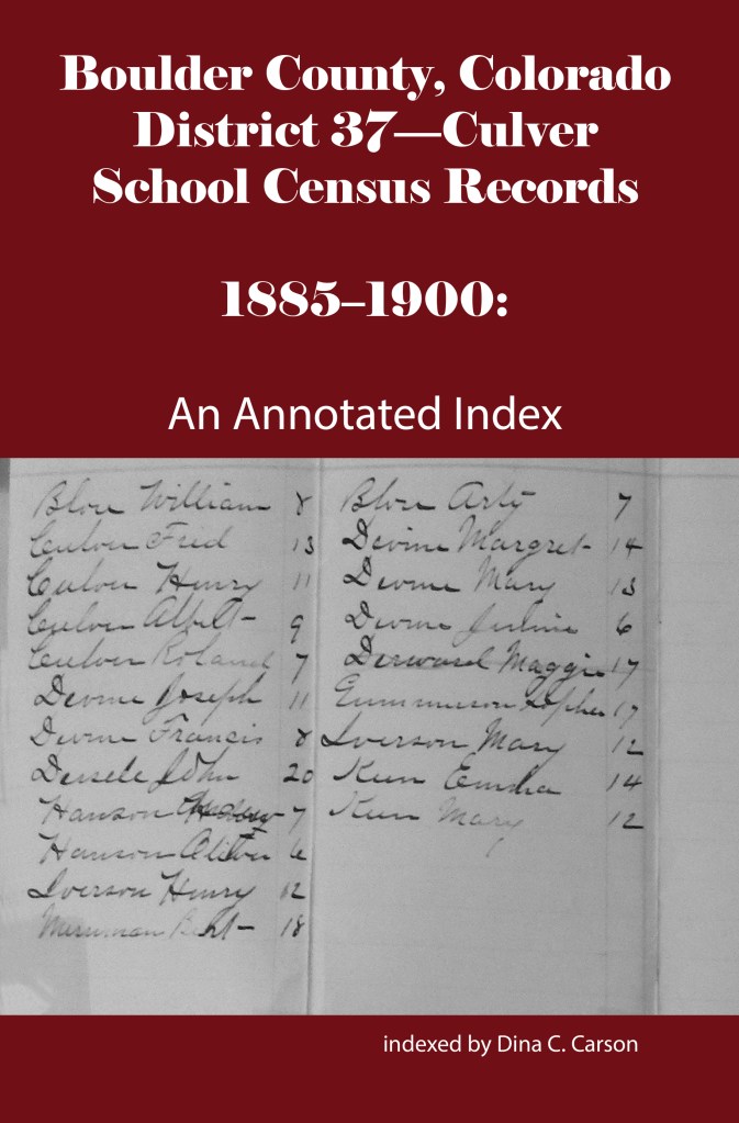 School District No. 43-Broomfield was formed in 1880 but there are no extant census records before 1884. Charles A Clark was Secretary of the district that year, and these are the families whose children attended the school: Harmon, Isaacs, Kilker, Miller, Stevens, Parsons, and Simpson.